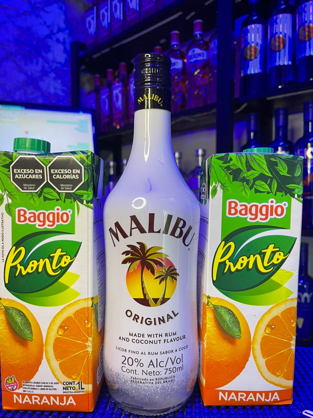 1 Ron Malibú + 2 jugos baggio de naranja