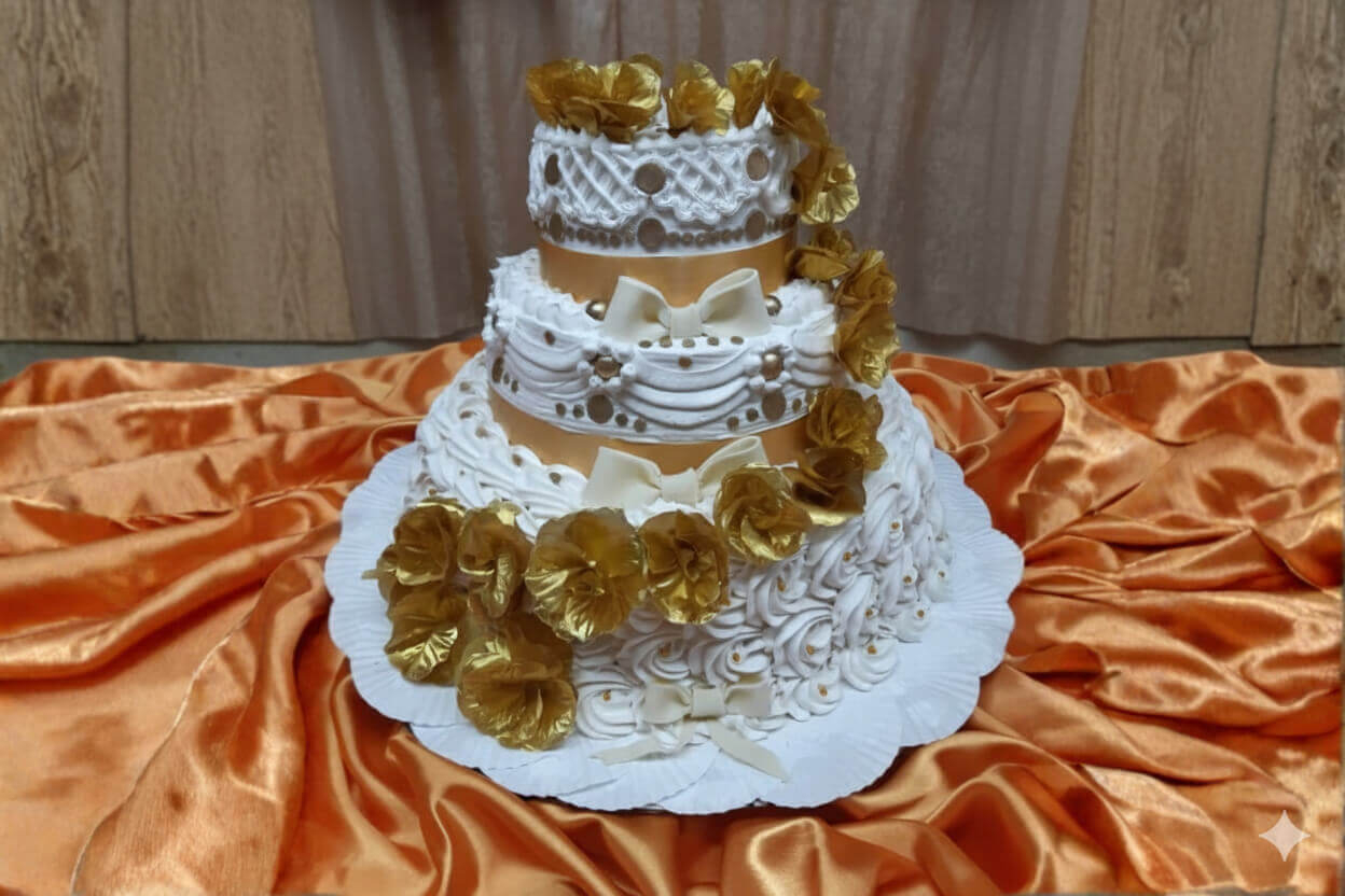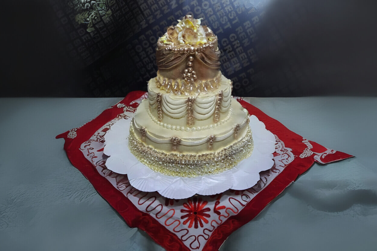 Decorado en tonos dorados y negros, tres pisos con diseño...