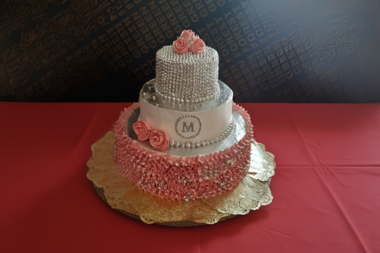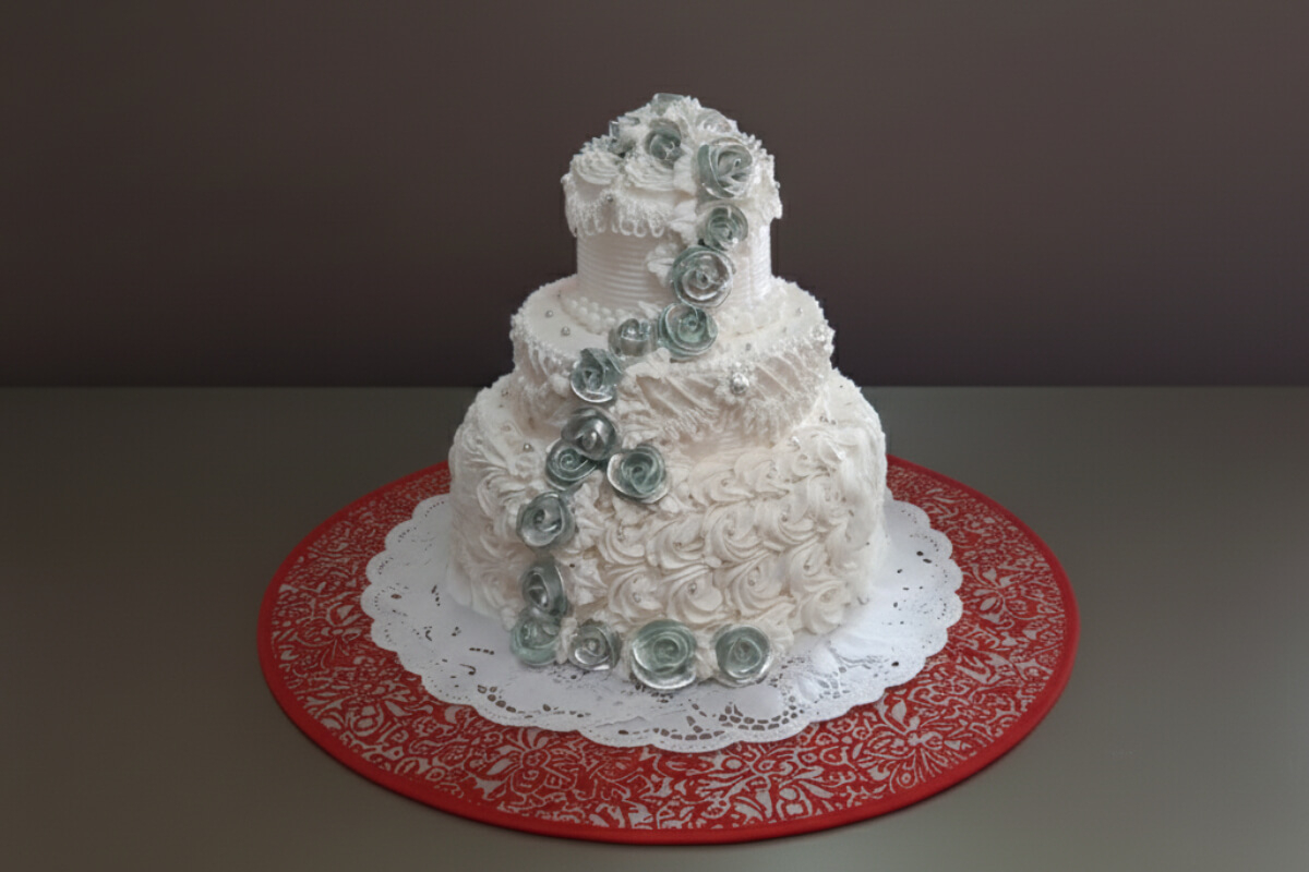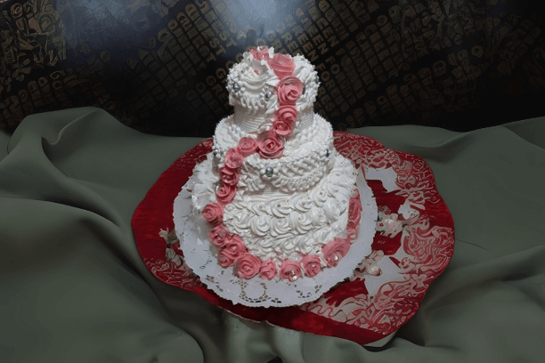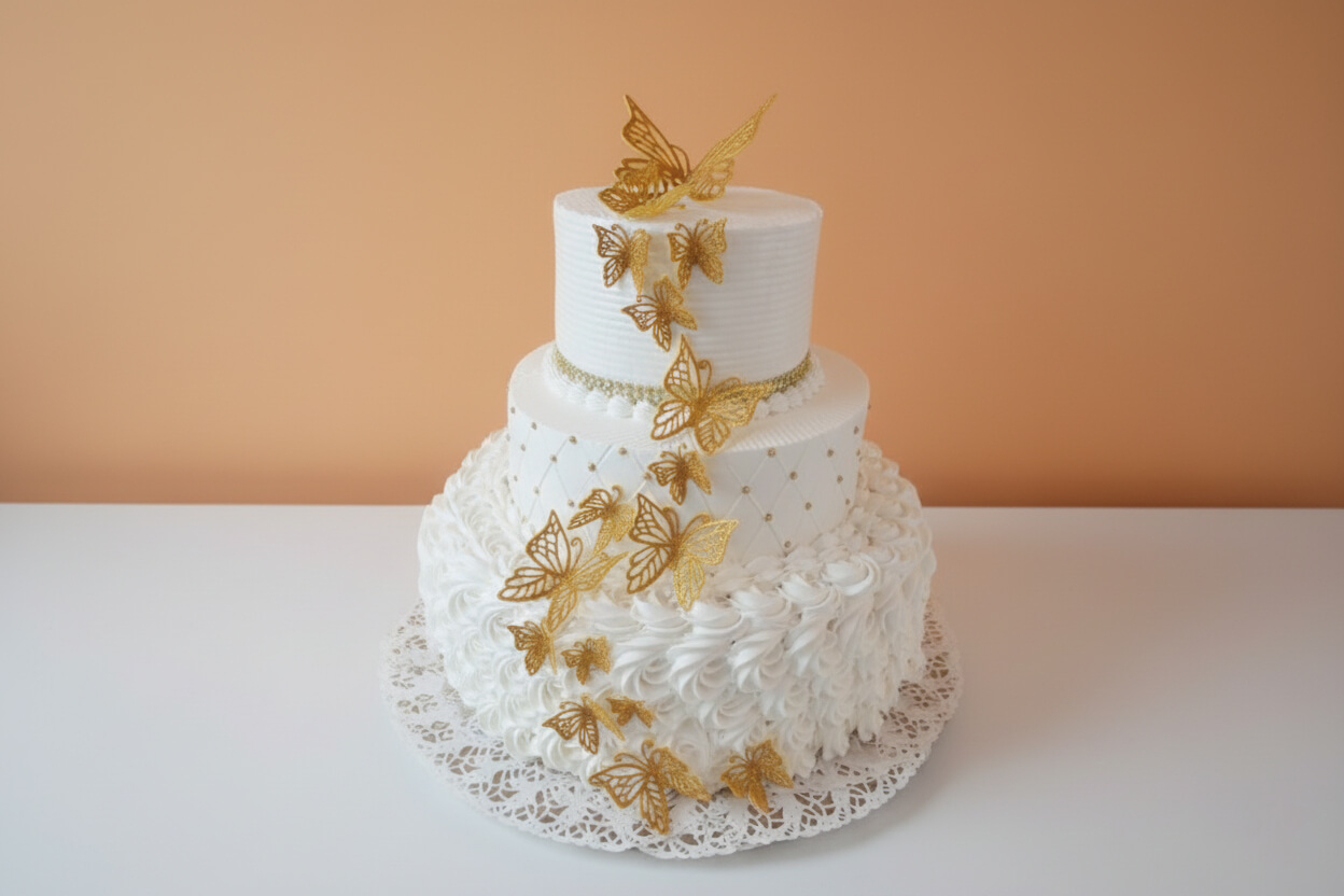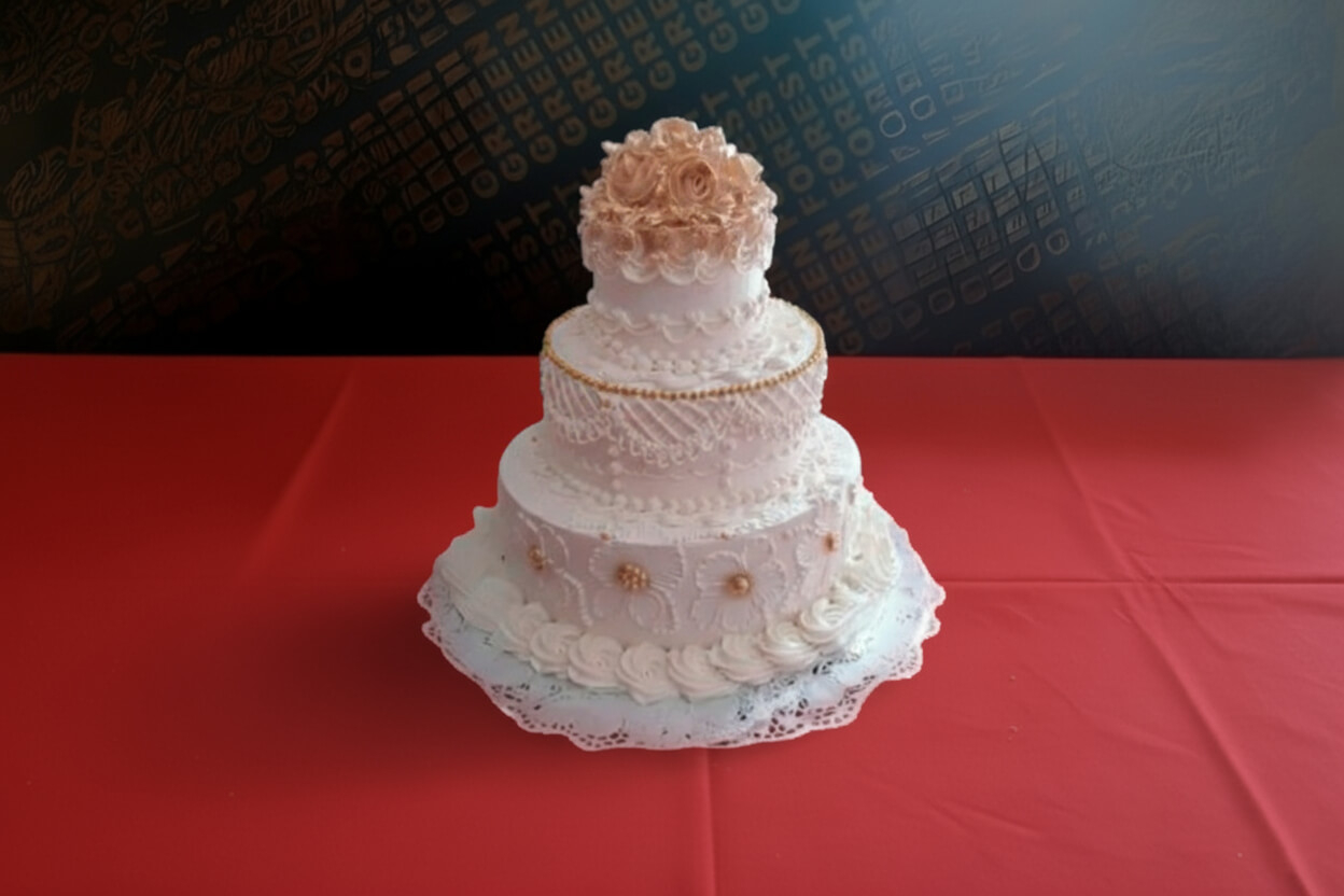 Decorado en blanco con detalles florales, tres niveles con...