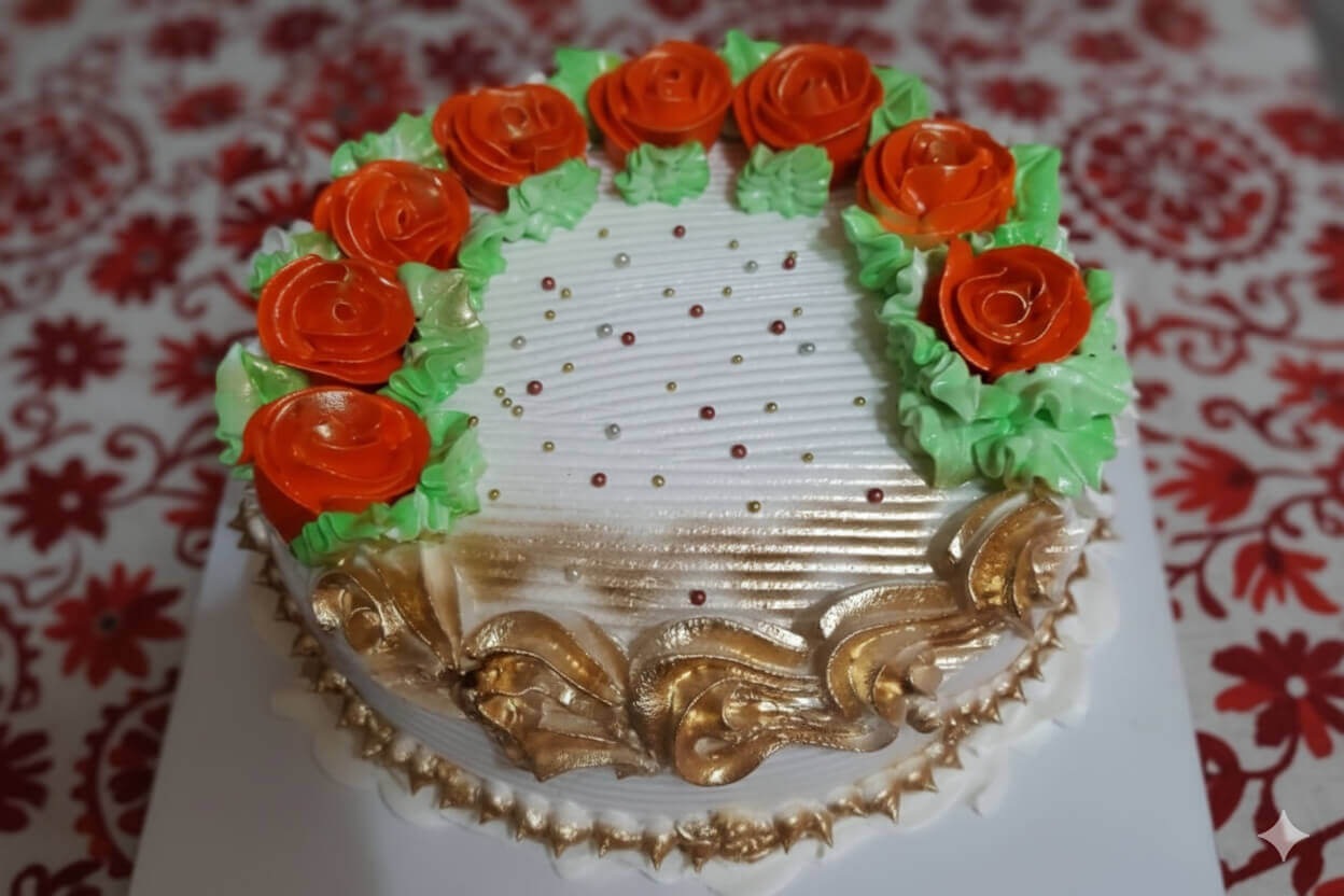 Decorado en blanco con toques dorados, rosas rojas y...