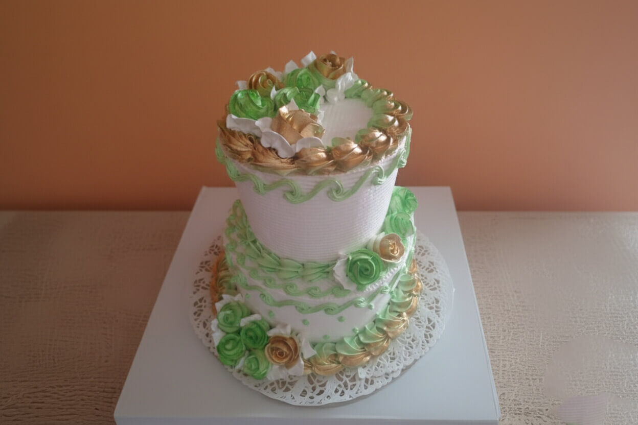 Pastel de dos niveles decorado con elegantes flores de...