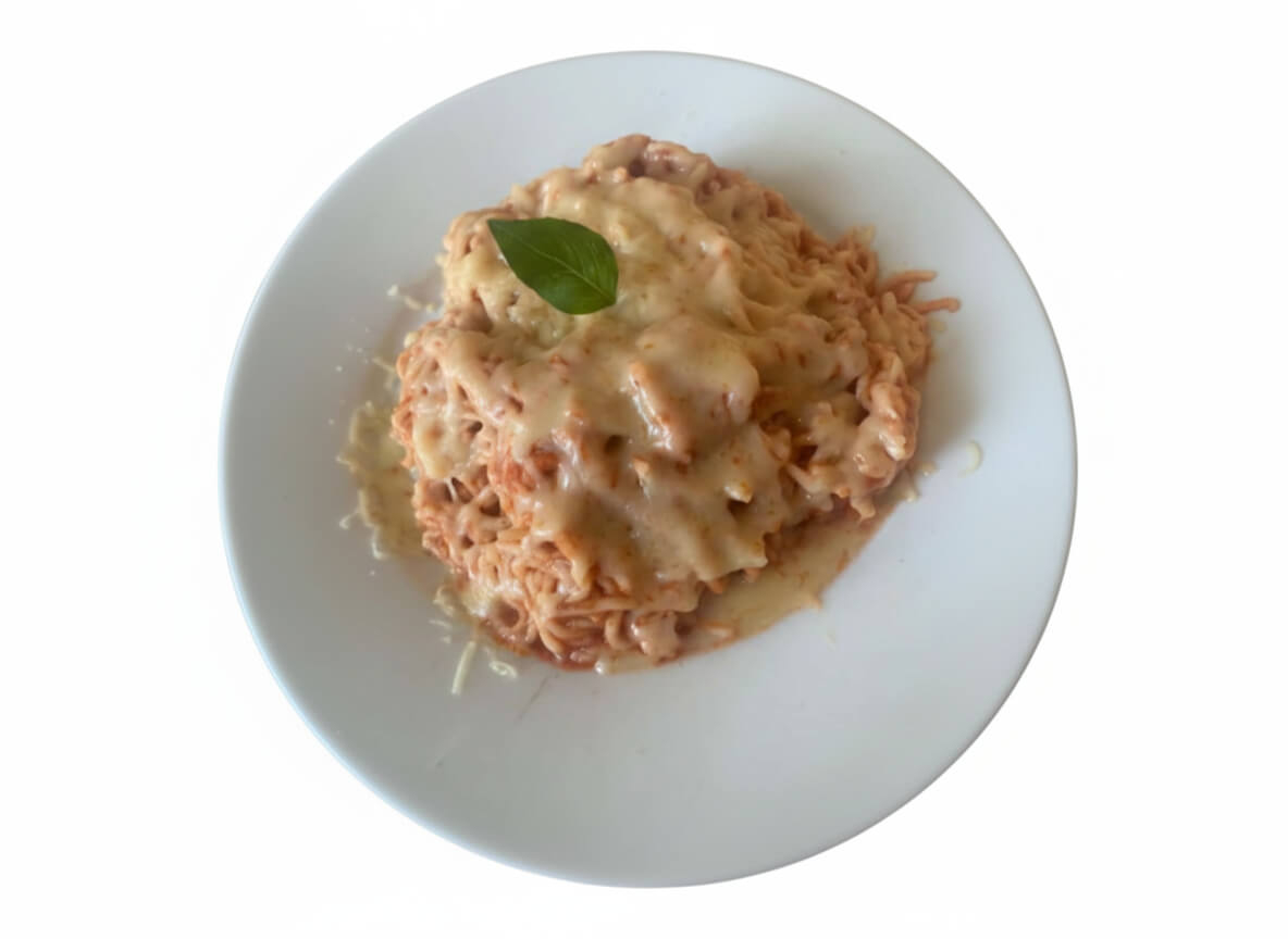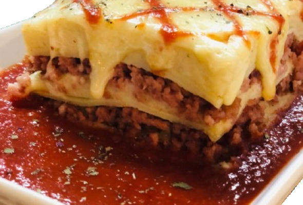 Capas de pasta casera, jamón y bechamel cremosa,...