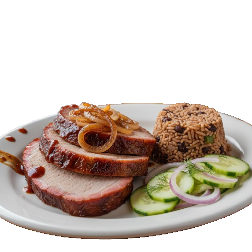 200 gramos de cerdo preparado a fuego lento con cebolla.