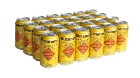 Caja de malta de la marca Bucanero, reconocida por su sabor...