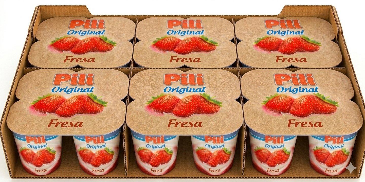 Caja con 24 unidades de yogurt cremoso en sabores variados.