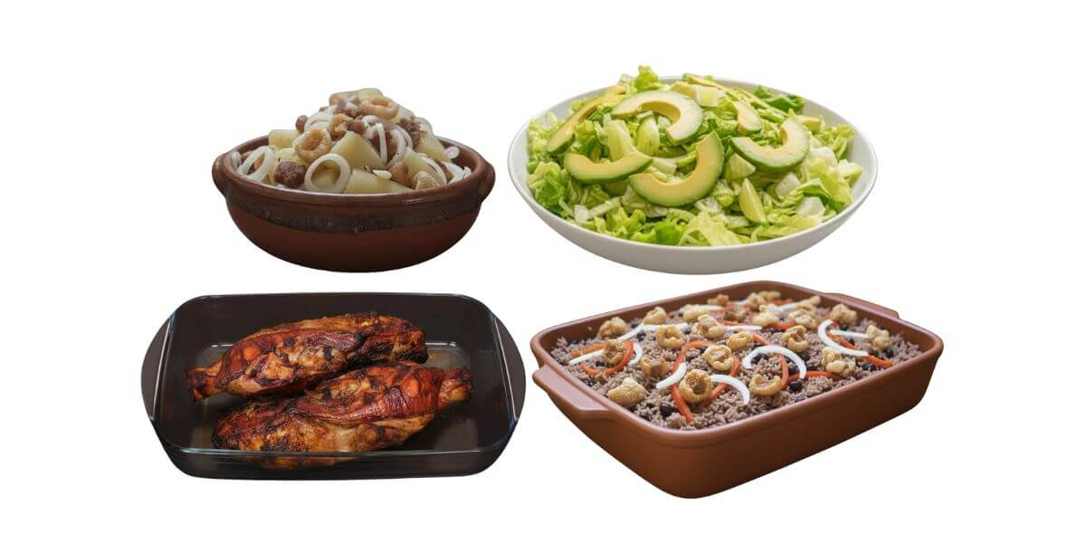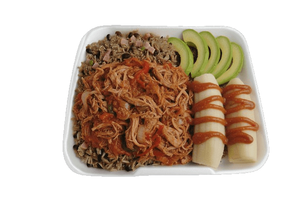 Arroz moro, vianda, ensalada y ropa vieja de cerdo (150 g).