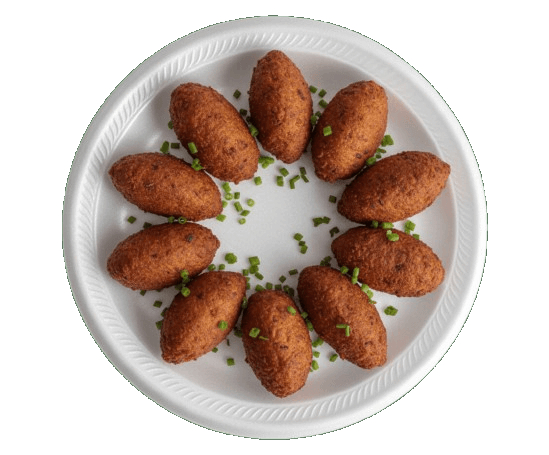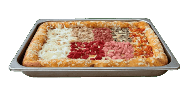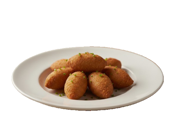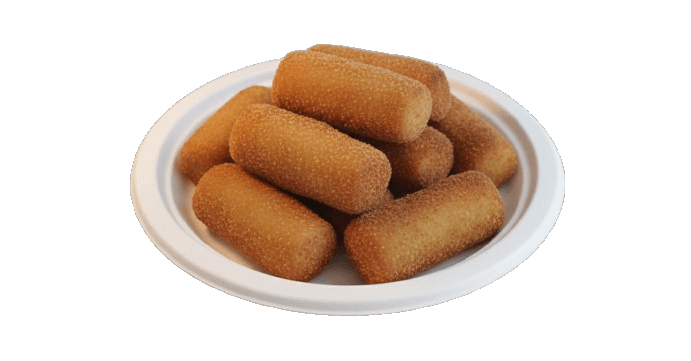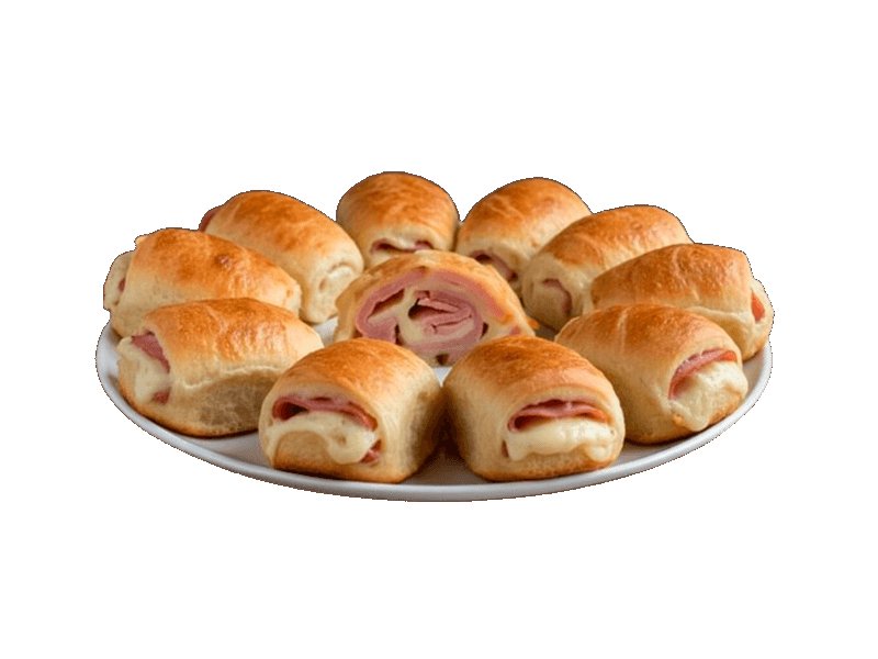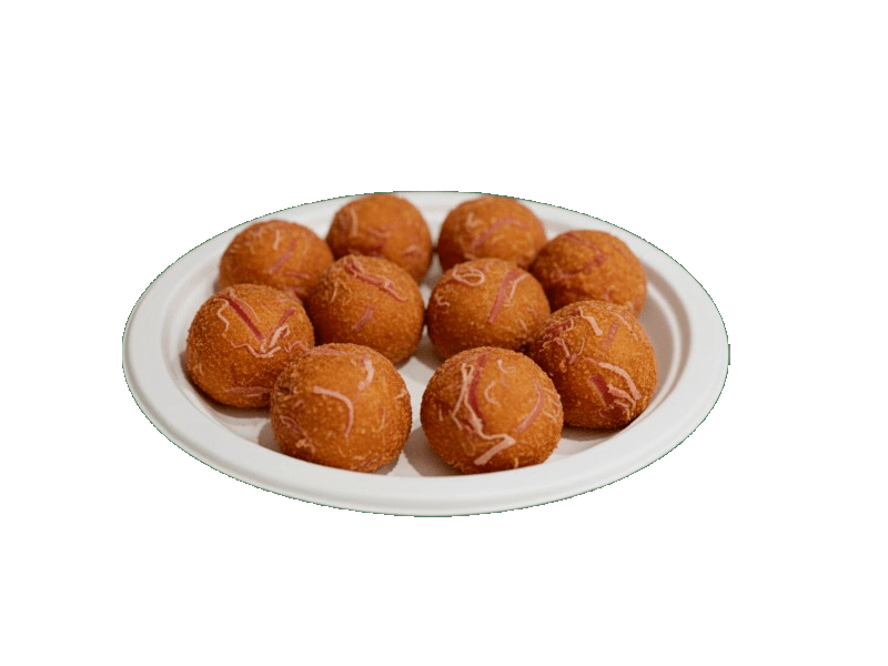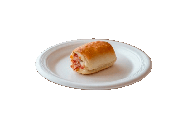Es una masa pizzera tipo dumpling rellena de Jamón, Queso,...