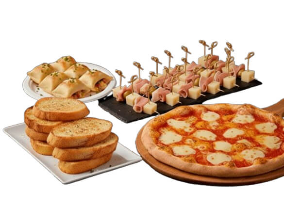 Bocatas, Pinchos de Jamón y Queso, Busquetas y Pizza.