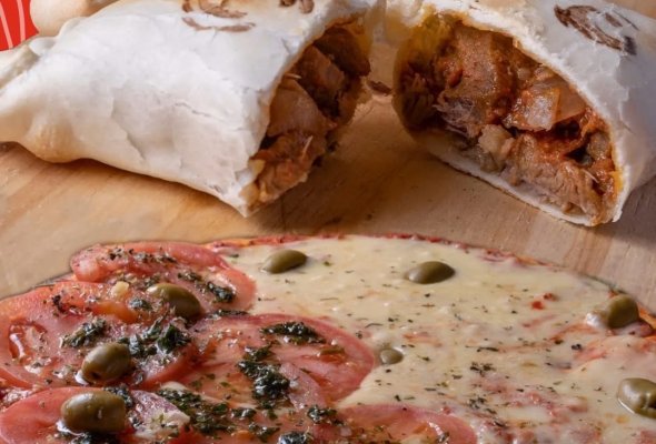 1/2 Muzzarella + 1/2 Napolitana + 2 porc. Faina + Gaseosa...