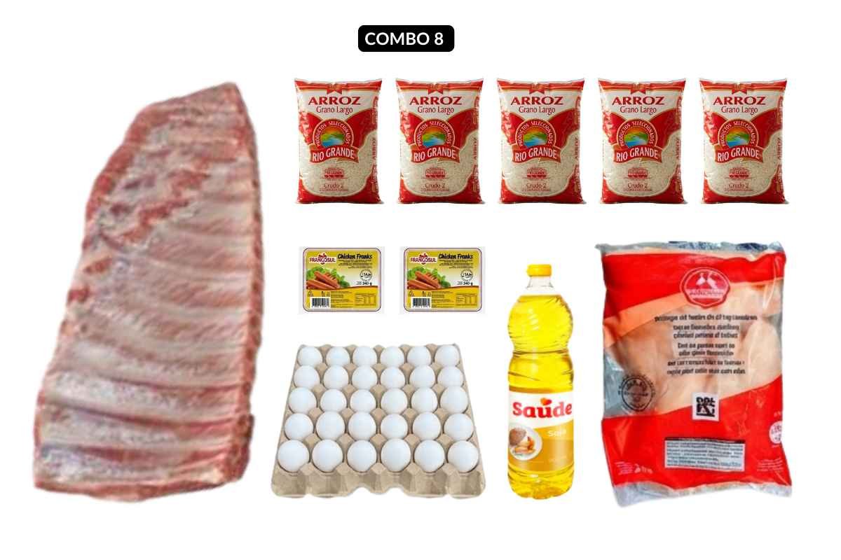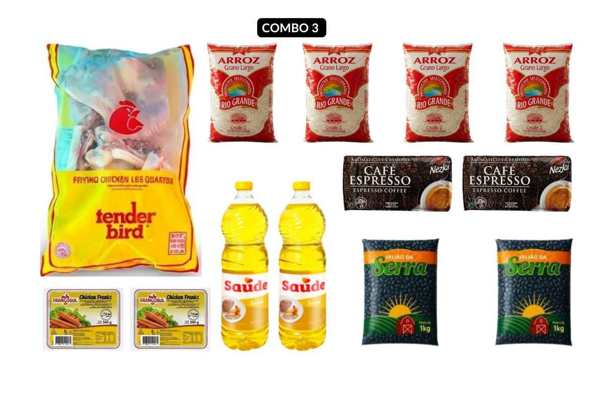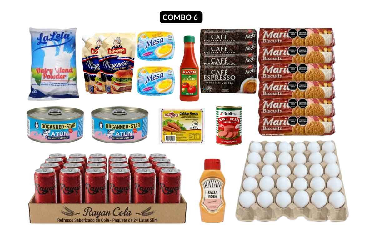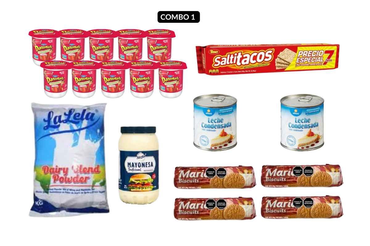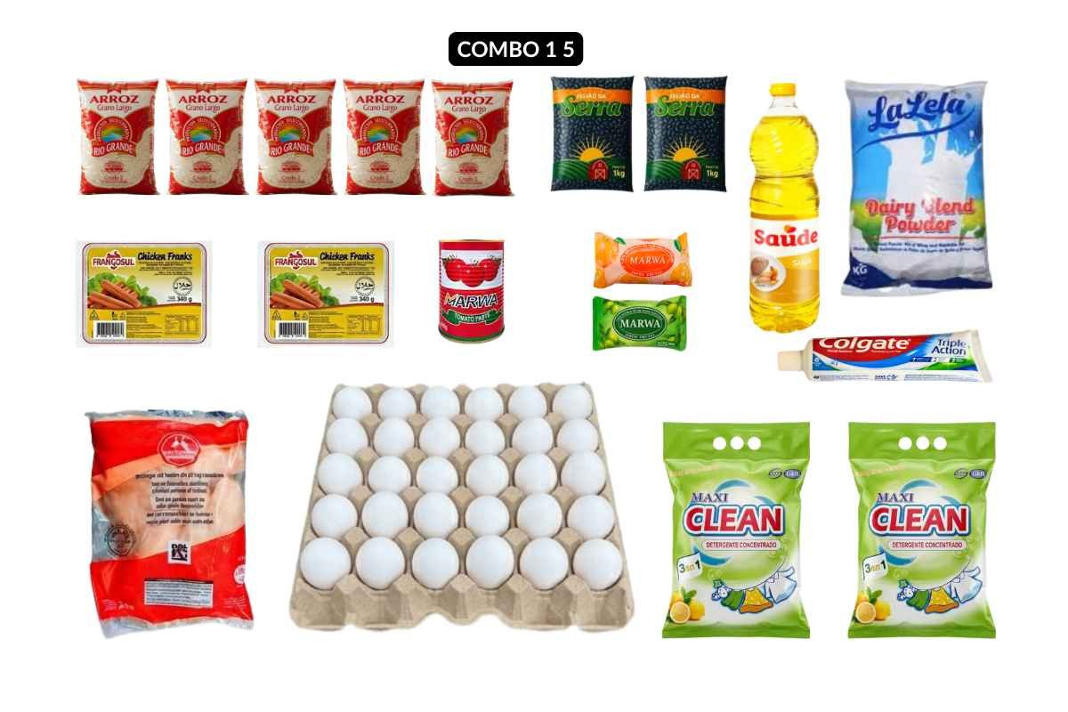 10 paquetes de arroz de 1 kg, 5 paquetes de frijoles negros...