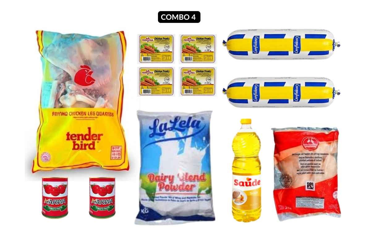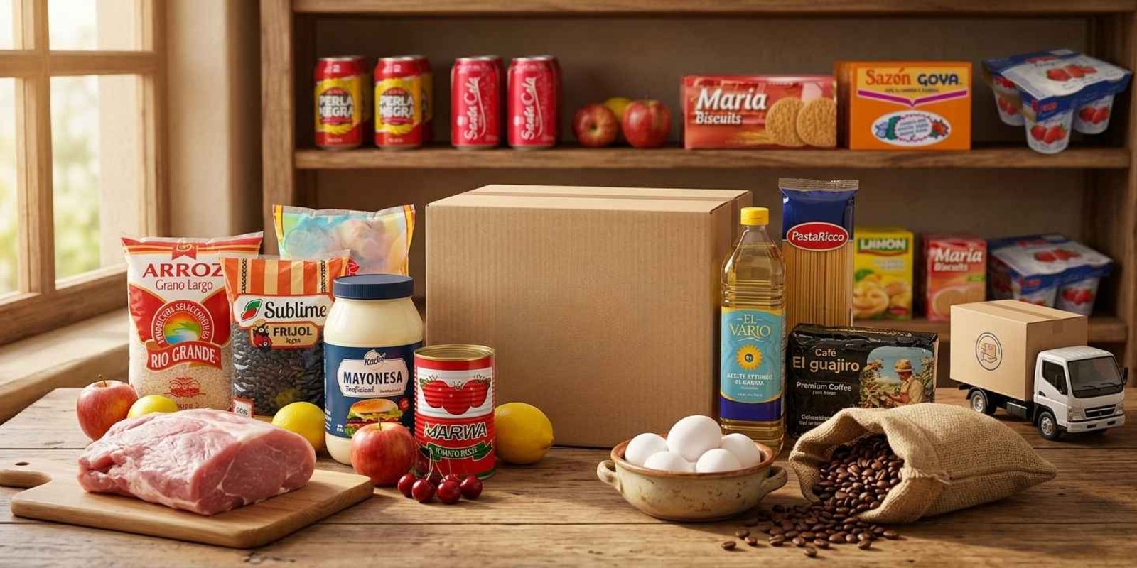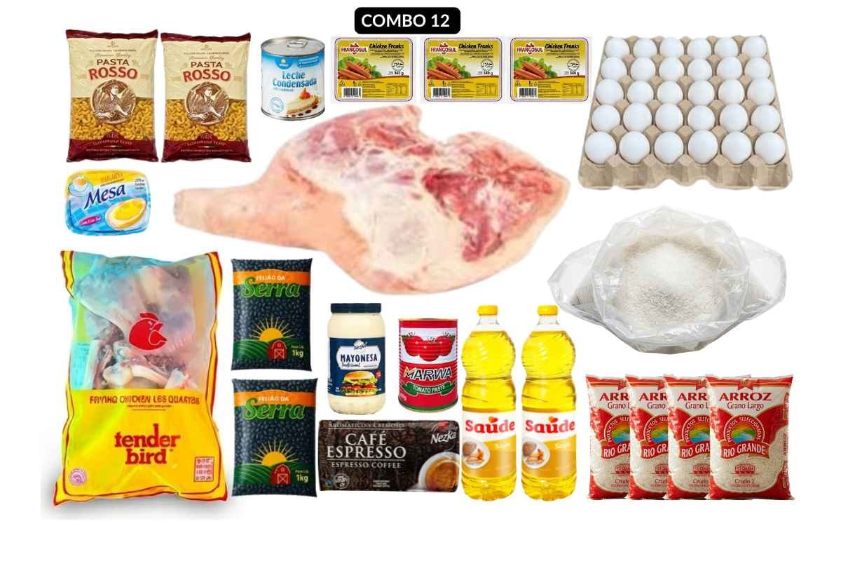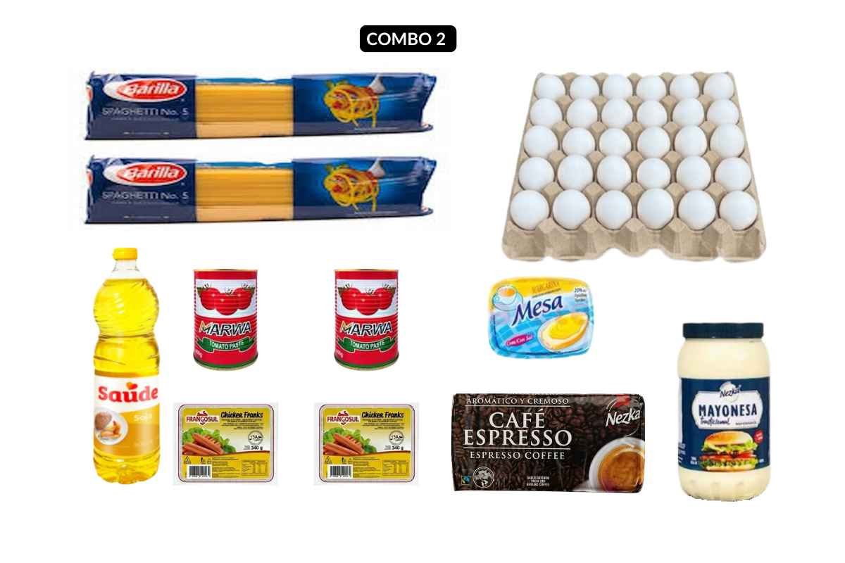 10 paquetes de arroz de 1 kg, 5 paquetes de frijoles negros...