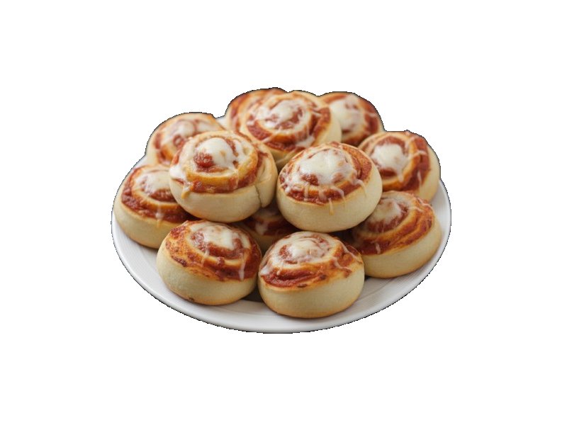 Es una masa pizzera tipo dumpling rellena de Jamón, Queso,...