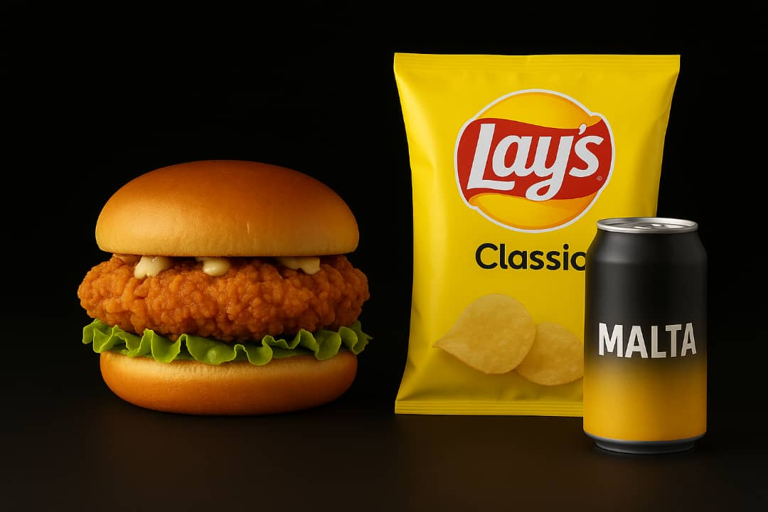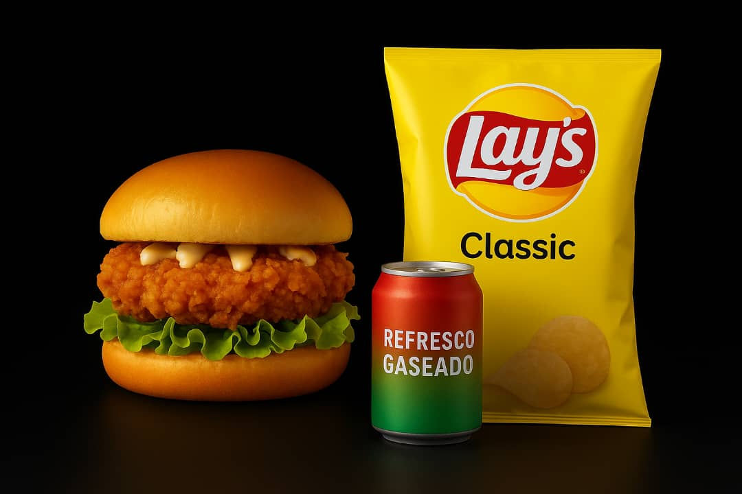 Hamburguesa Crispy, Papas Chips y Refresco Gaseado con...