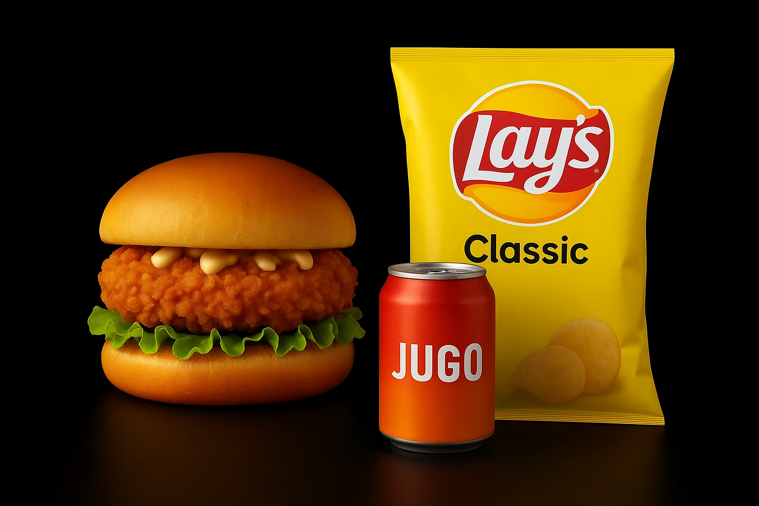 Hamburguesa Crispy, Papas Chips y Jugo Enlatado a su...